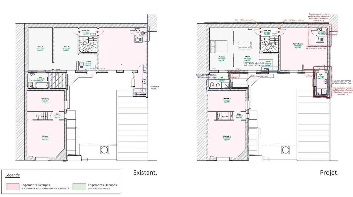 • Réalisation d'un programme de travaux global, prenant en compte les nombreuses contraintes économiques, techniques et architecturales du bâtiment.
