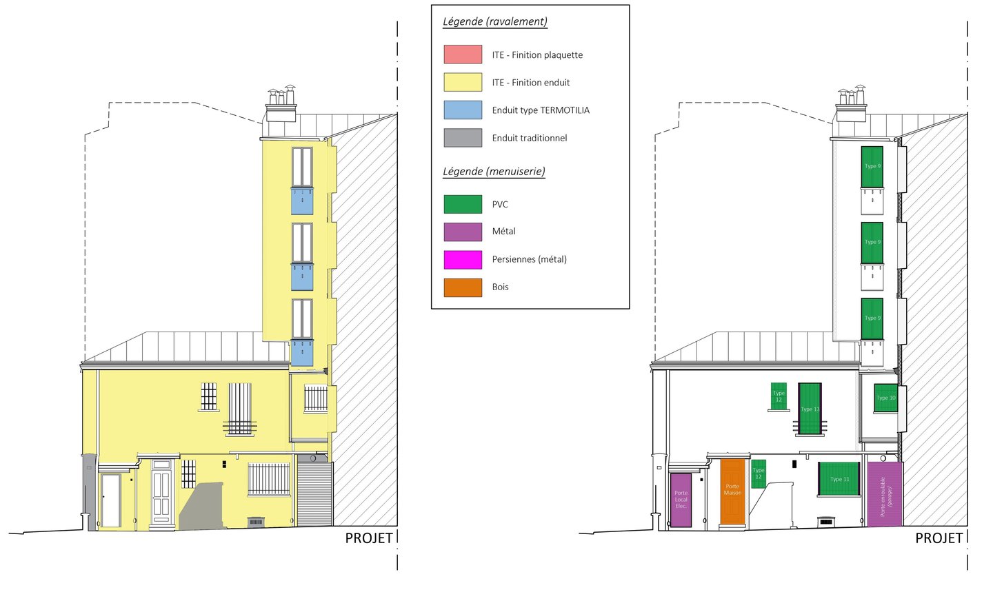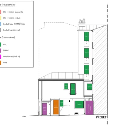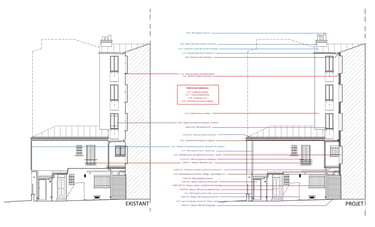 Rénovation avec mise en place d'une isolation par l'extérieure (ITE) d'un immeuble d'habitations parisien.