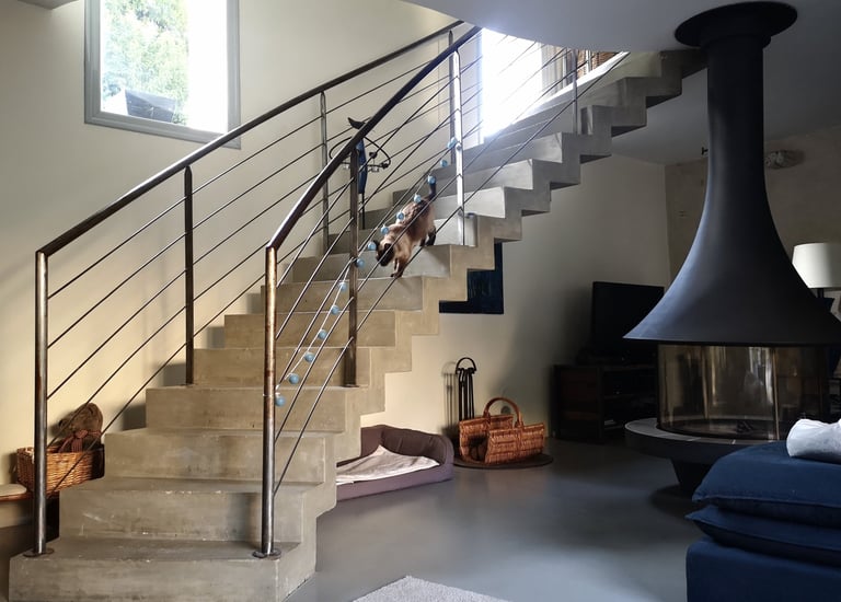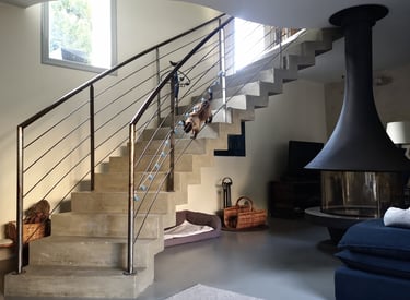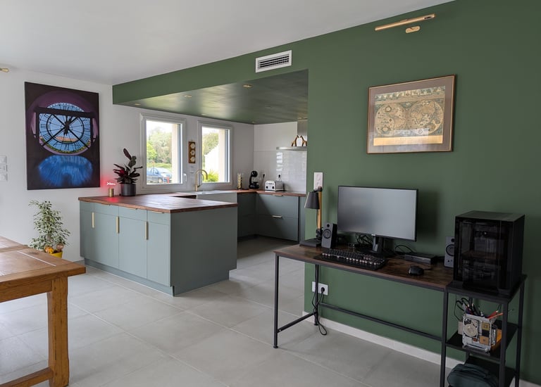 Conception et réalisation personnelle de travaux intérieurs sur une maison livrée brute constructeur.