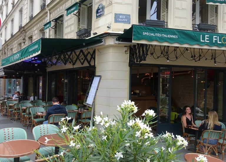 Rénovation complète d'une pizzeria historique au cœur de Montmartre, comprenant salle, cuisine et devanture.