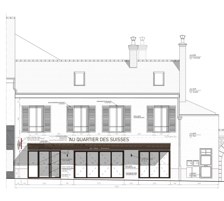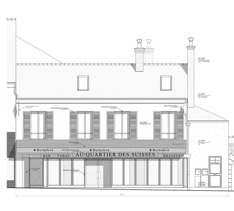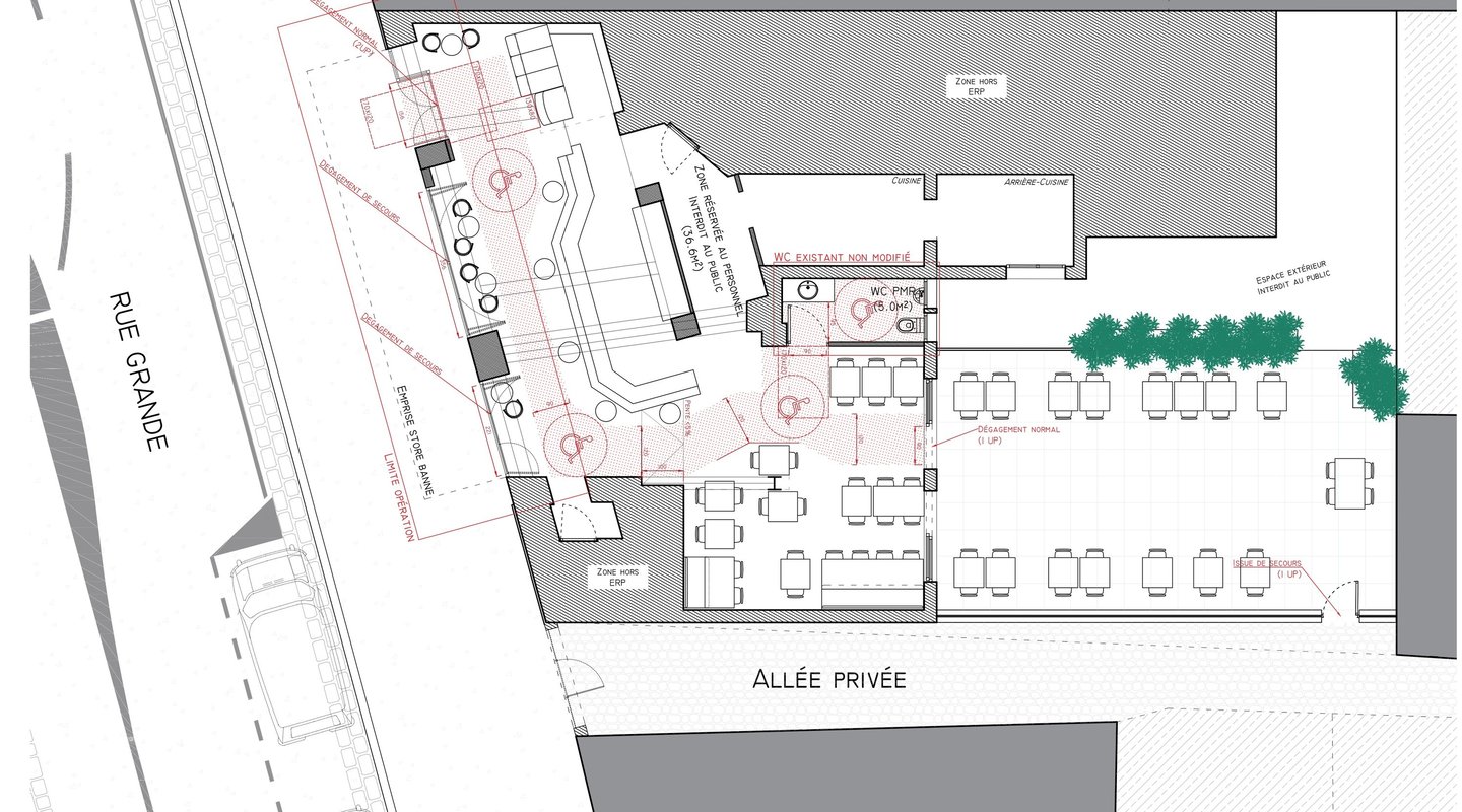 Changement de devanture, mise en accessibilité générale et accompagnement administratif d'une brasserie à l'occasion de sa rénovation.