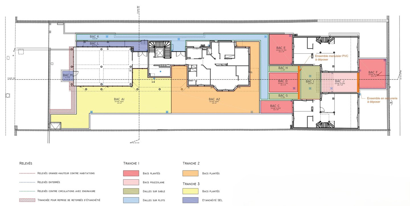 • Réalisation d'un programme de travaux global intégrant les travaux de reprises de structures et d'étanchéités, comprenant le phasage opérationnel (grande masse de terre végétale et végétaux à déplacer) et la prise en compte des contraintes techniques du site (accessibilité difficile aux engins de chantier).