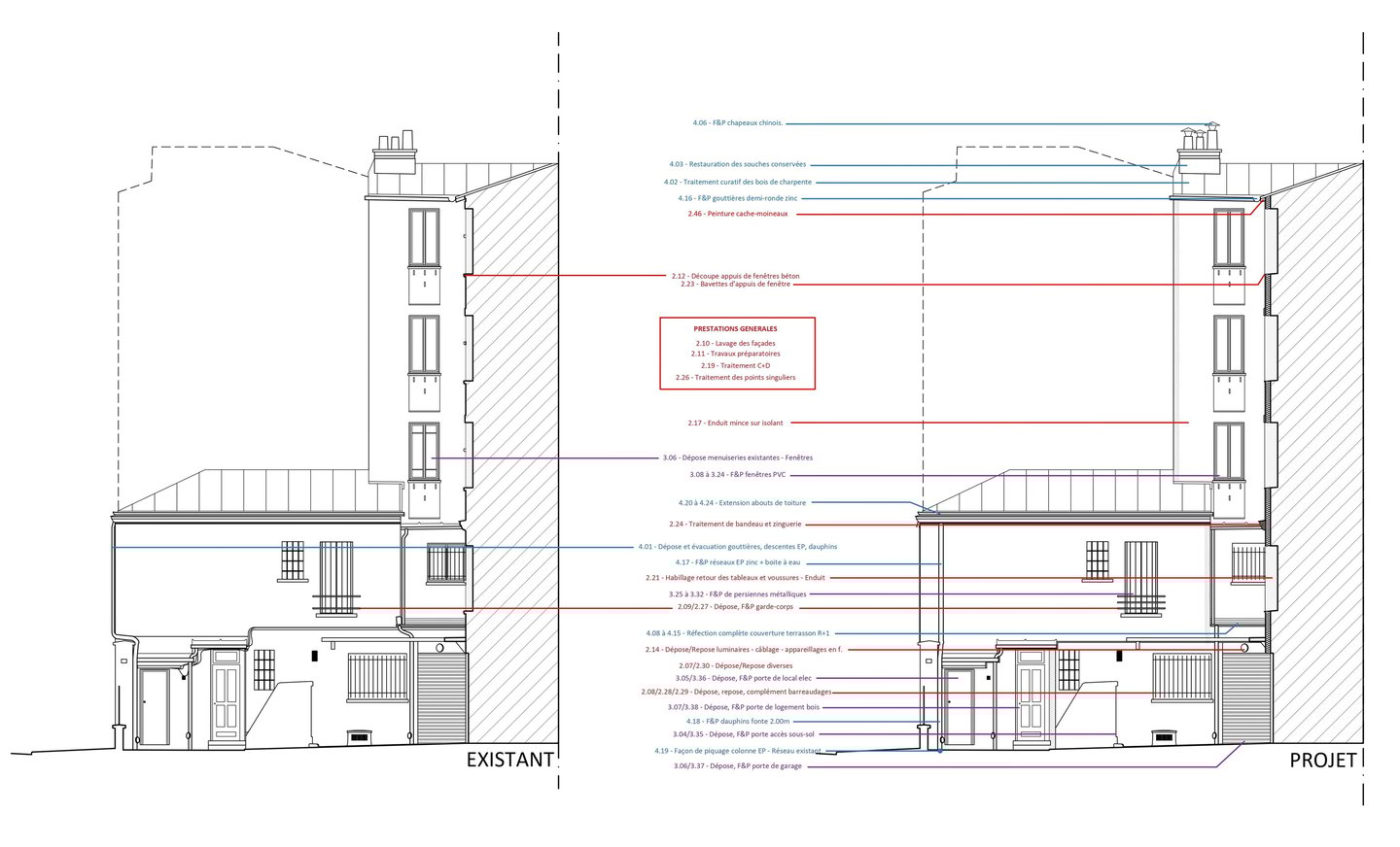 • Réalisation d'un programme de travaux global, prenant en compte les nombreuses contraintes économiques, techniques et architecturales du bâtiment.