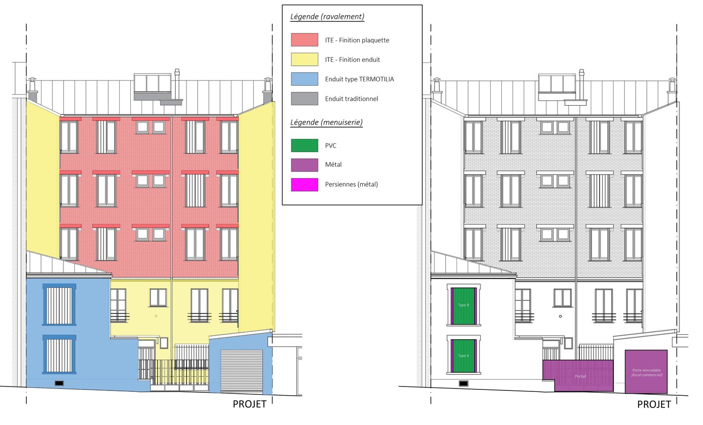 Rénovation avec mise en place d'une isolation par l'extérieure (ITE) d'un immeuble d'habitations parisien.
